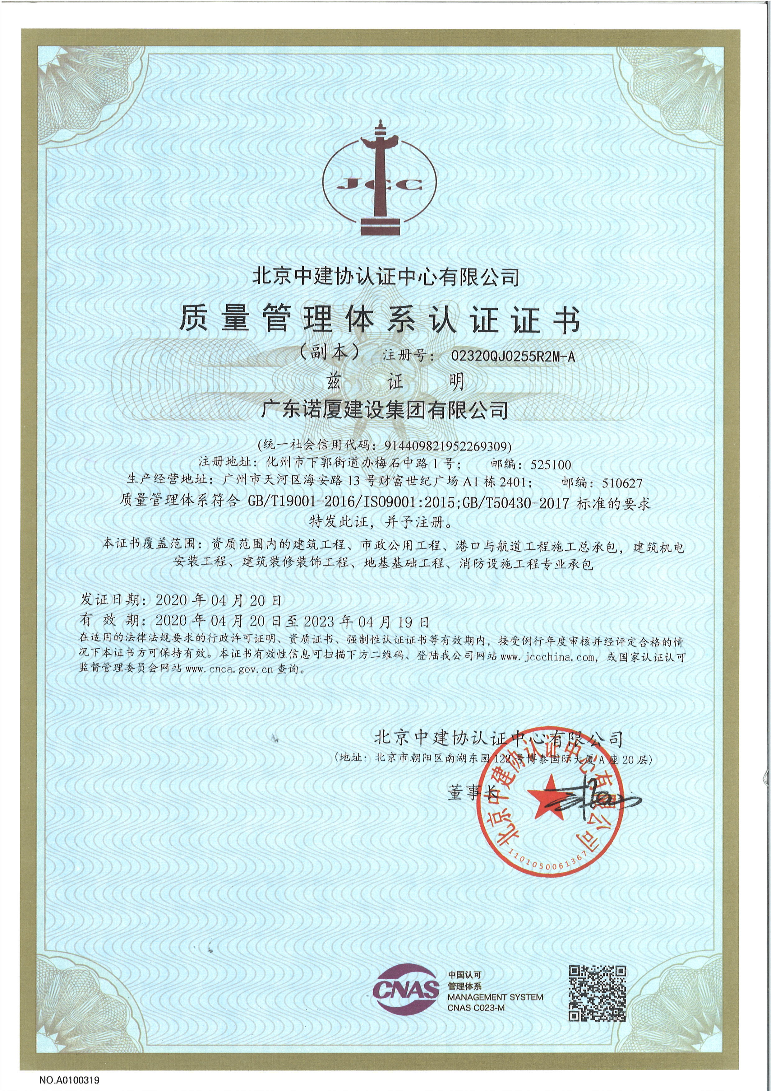 廣東諾廈建設集團有限公司是諾廈集團的核心企業,具備國家房屋建筑工程施工總承包壹級、市政工程施工總承包壹級、港口與航道工程總承包、建筑裝修裝飾工程、消防設施工程、地基基礎工程、機電設備安裝工程、體育場地設施工程、建筑智能化工程、河湖整治工程、水利水電工程等資質。......